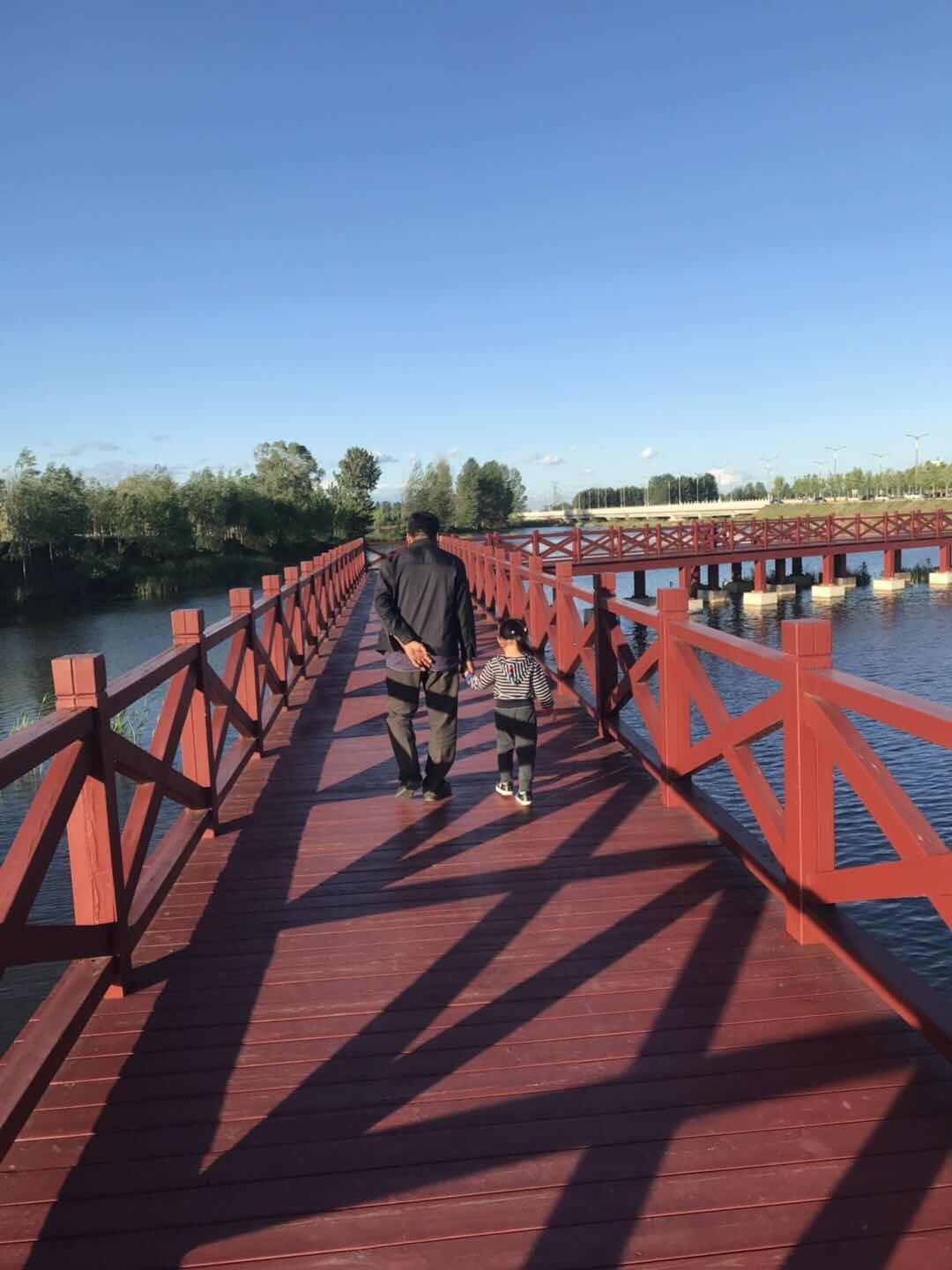 周末去公園游玩時候,我家的菇娘和她爺爺一起手拉手有說有笑的一起走著。這是我家的大菇娘在玩網紅橋,搖呀搖,搖到外婆橋。