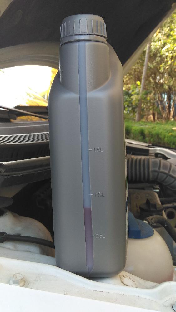 放掉舊的防凍液,加入大量純水沖洗(可用娃哈哈純凈水大桶代替),然后排掉,想排放徹底要拆節溫閥和暖風箱水管。我用一種懶人方法,置換了6升,言外之意里面有1.5升的純水。