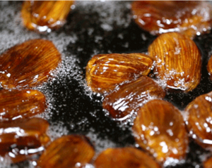 白芝麻需要小火翻炒,直至香氣四溢,然后鋪開,讓蜜棗一個個的在上面翻滾,以便均勻覆蓋在蜜棗的表面。