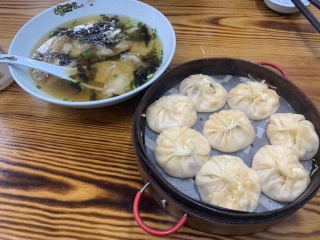 一路上速度不算快,七點多點出發(fā)到達(dá)目的地都快十點了,找個停車位,停好車就直奔胖大姐的小吃店,對了嵊州馬路邊車子不能隨便停,一定要停到車位里,否則吃的沒到罰單已經(jīng)到了。還好已經(jīng)過了早餐高峰,用餐的人少,不然不知道要排隊多久呢!坐下就點了豆腐包和餛飩,嵊州的餛飩是出了名的皮薄餡多肉新鮮,這里不多介紹了,豆腐包也是嵊州小吃里的主角,有豆腐粉絲的,豆腐配酸豆角的,還有豆腐肉餡的,味道的正宗,上等的食材成就嵊州小吃,在點上煎包和蛋卷肉,吃飽還可以周邊游玩下,像嵊州的新昌大佛寺,穿巖十九峰都是不錯的避暑勝地!!!