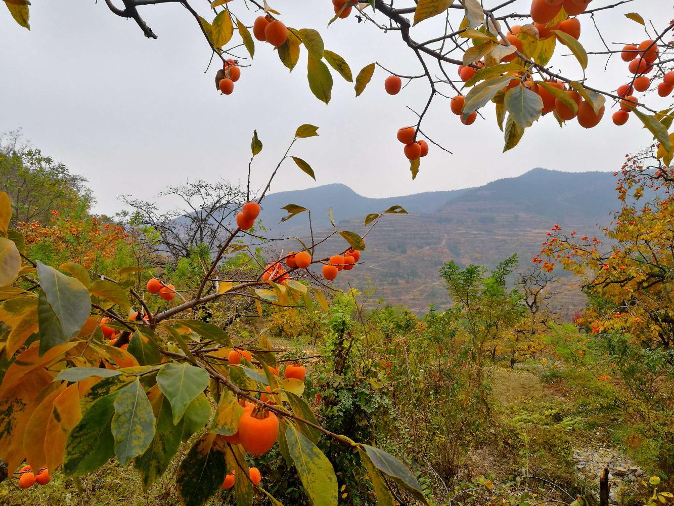 這一樹的柿子和一樹的枯黃的葉子似乎無法分辨