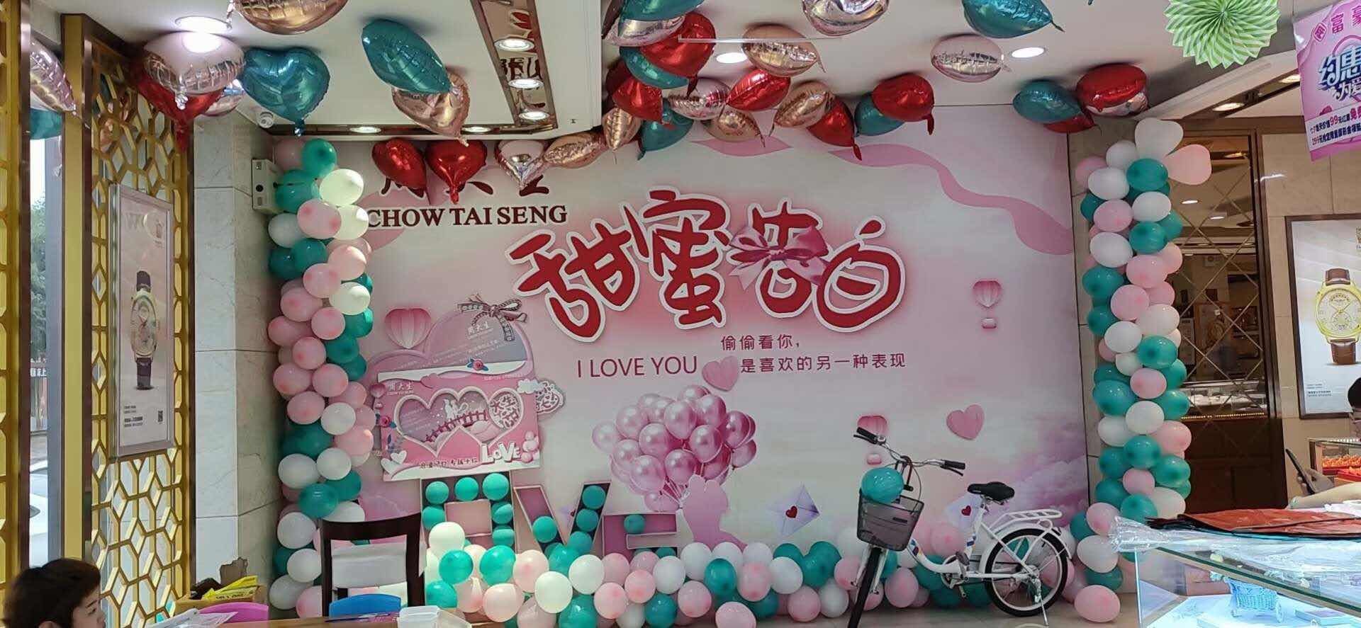 進(jìn)入店里發(fā)現(xiàn)裝飾的更加溫馨,各種顏色的氣球用來(lái)給買(mǎi)首飾表白的人,增加一點(diǎn)浪漫元素。