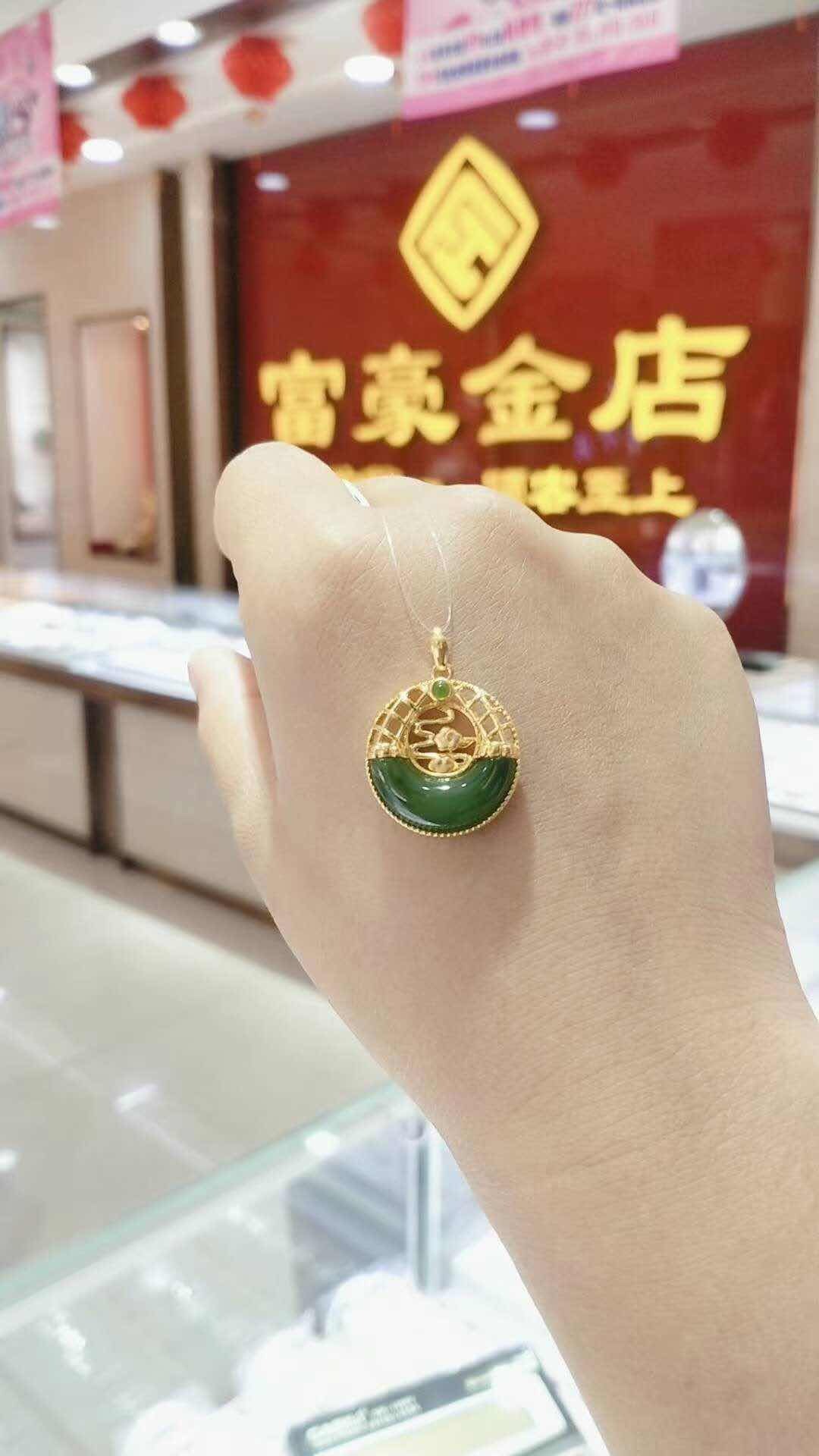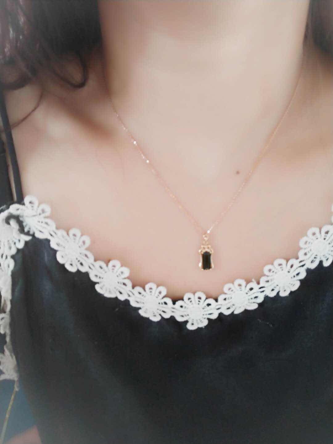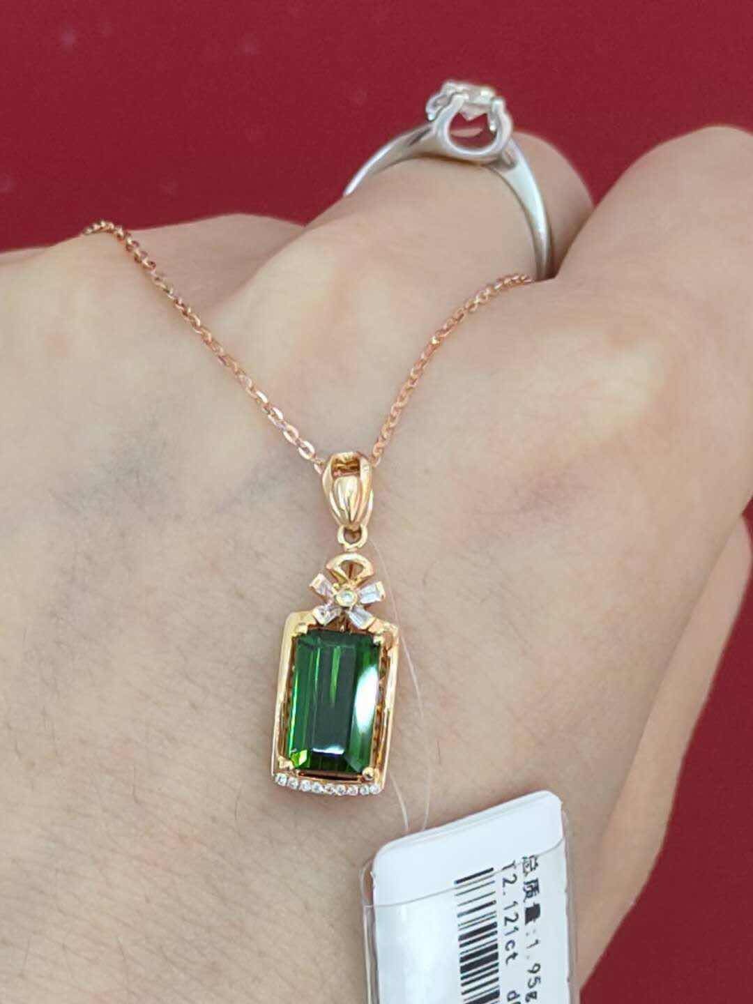來(lái)個(gè)特寫(xiě),18K金碧璽掛墜,鑲嵌磚石裝飾,看起來(lái)很漂亮。